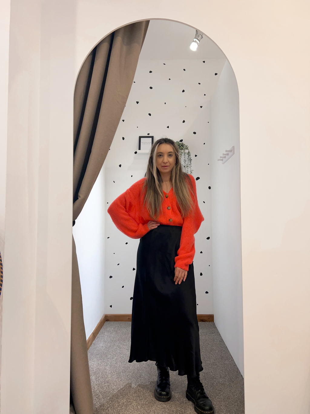 Black satin midi skirt