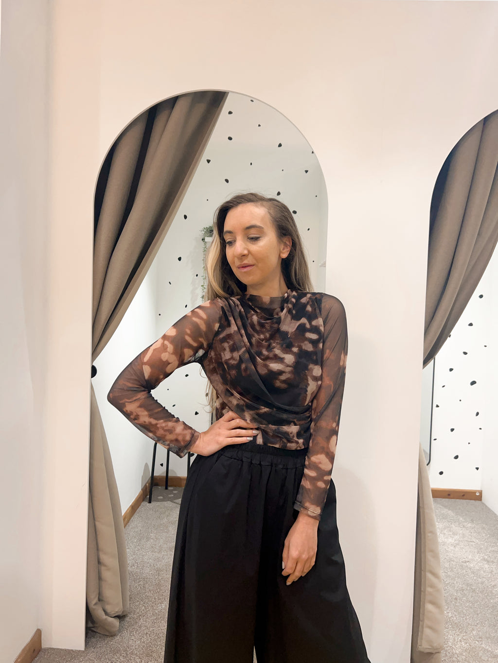 Long sleeve mesh top brown