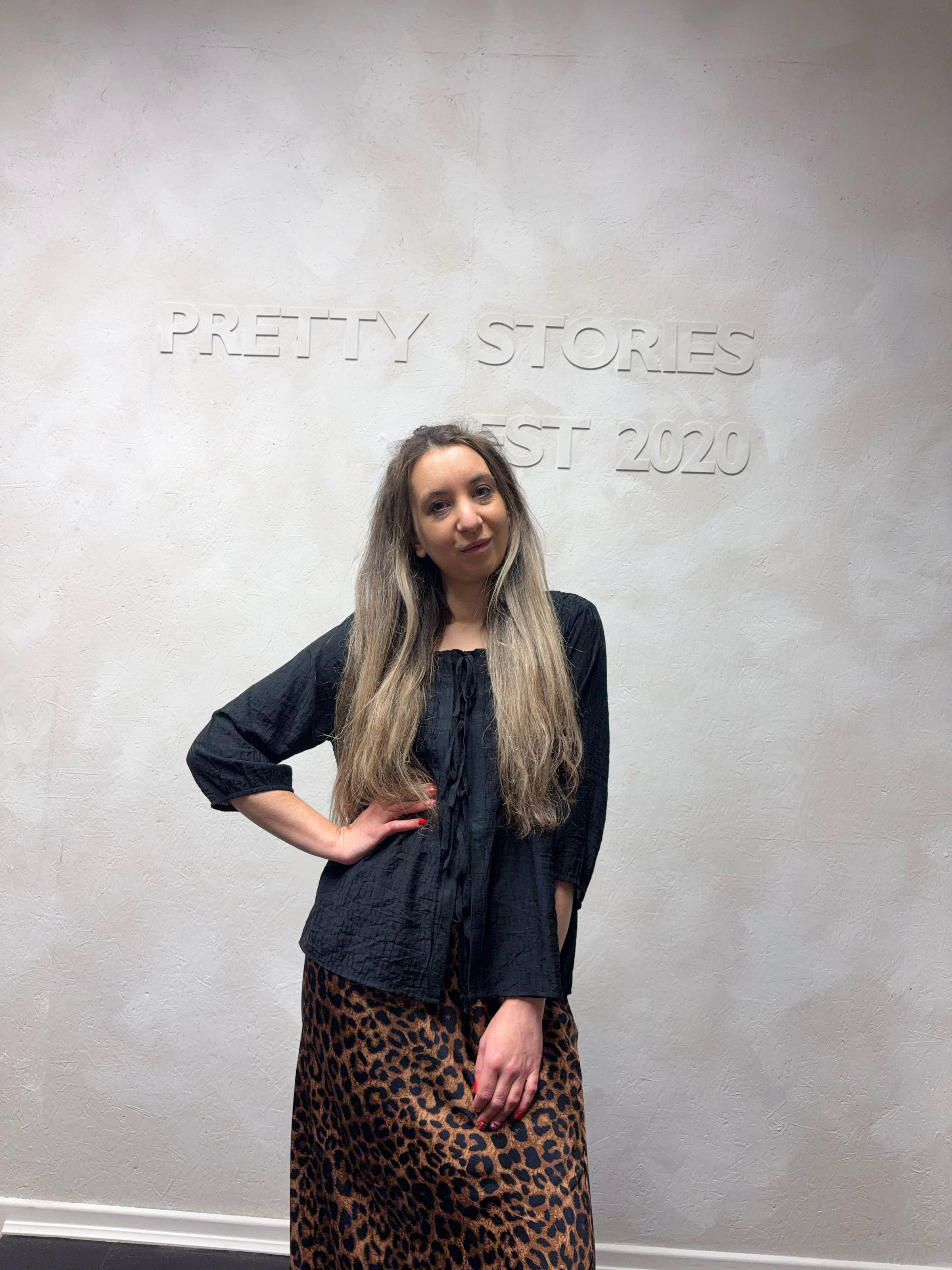 Textured shirred bodice tie front blouse