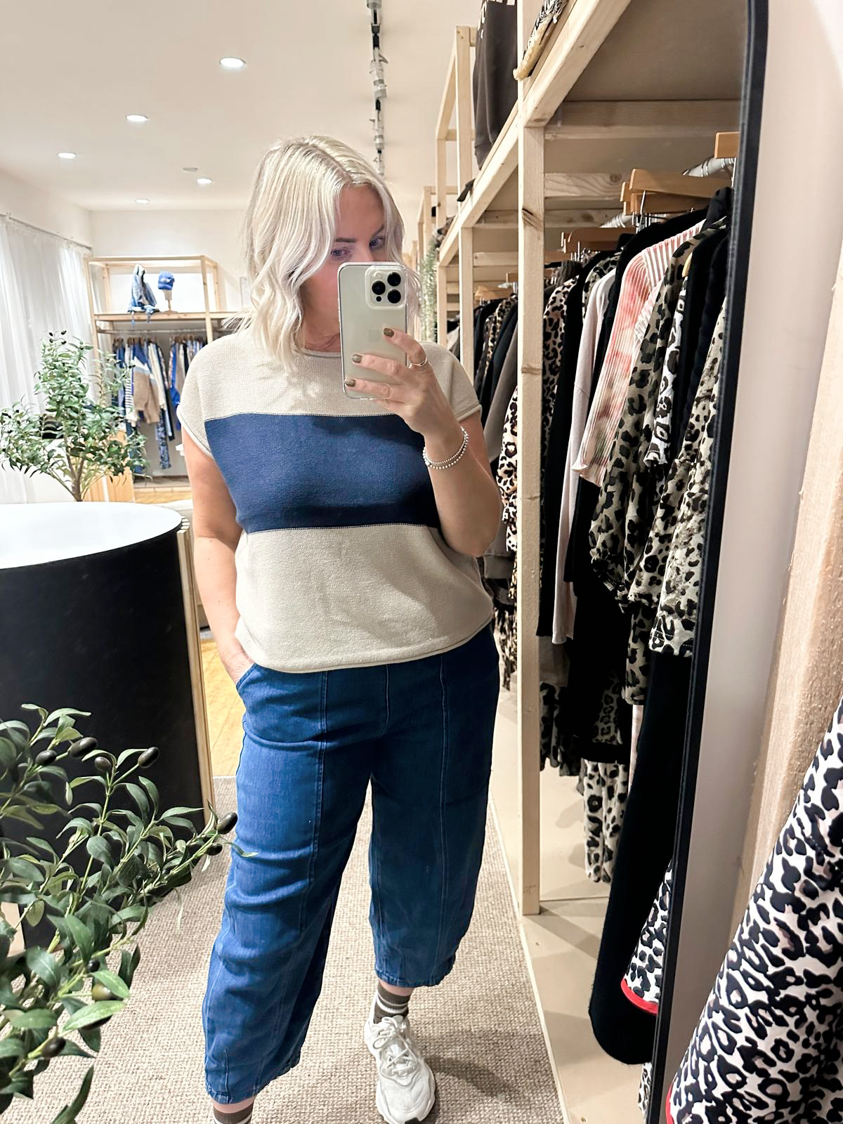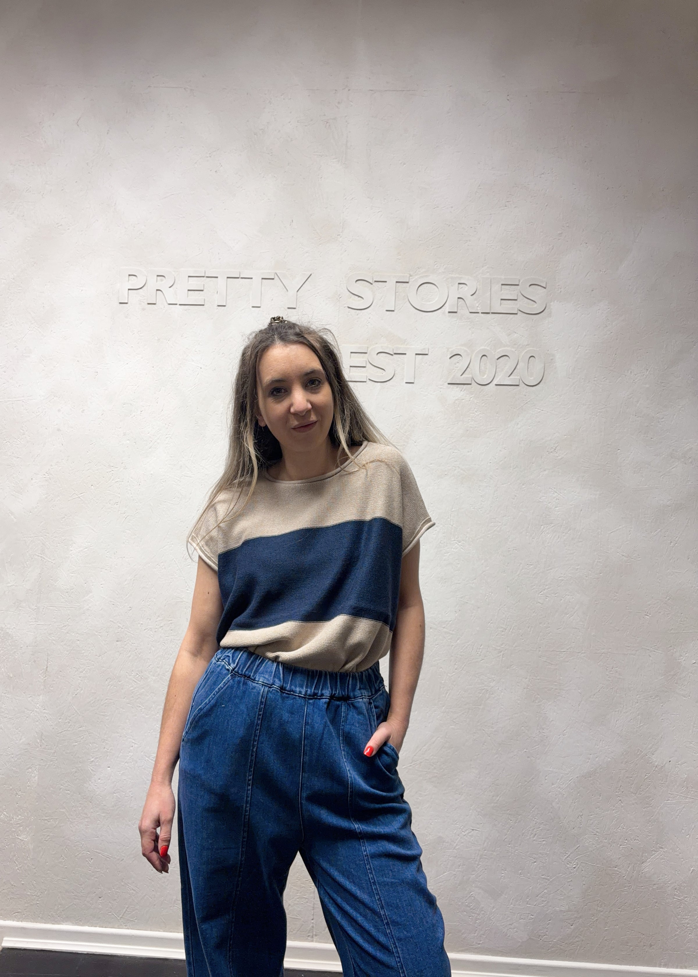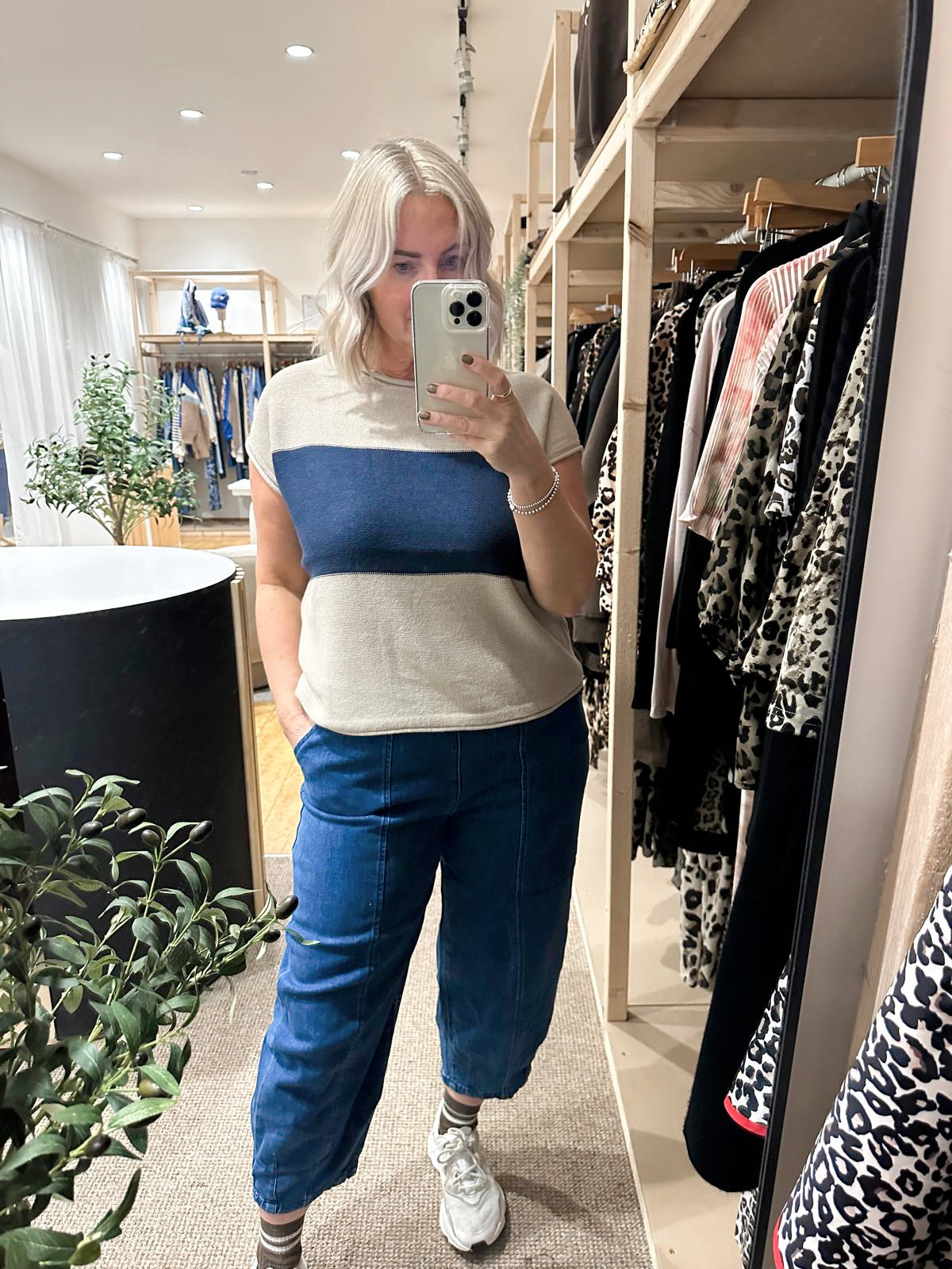 Cotton mix block stripe sleeveless jumper